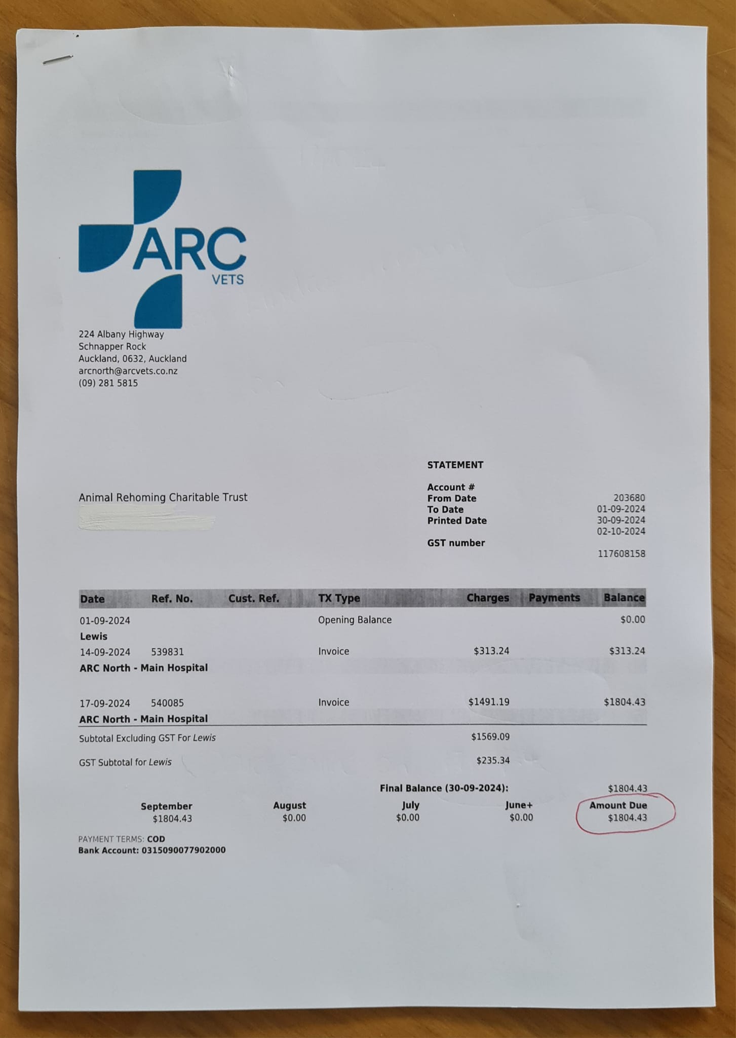 Please help us to give Lewis the best chance of a happy future. Please donate as soon and as much as you are able. His specialist bill has reached $1,804.43. This urgently needs to be paid before further investigative procedures can be undertaken. Thank you so much.